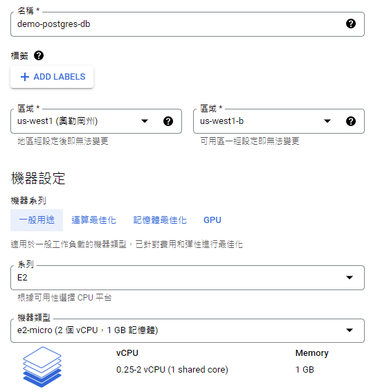 us-west1< 地理位置離台灣最近,故選美西 - 30 GB 以內的標準永久磁碟